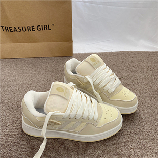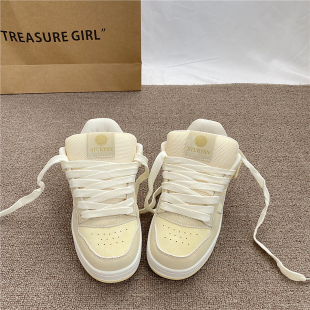 运动休闲百搭板鞋 小白鞋 女ins2026春夏新款 港风原创奶fufu面包鞋