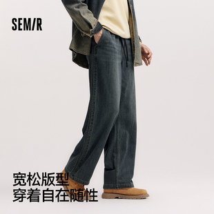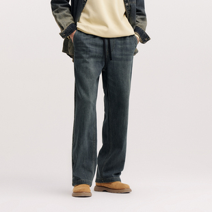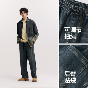 抽绳松紧腰裤 男春宽松直筒牛仔长裤 肌理提花 森马牛仔裤 森柔