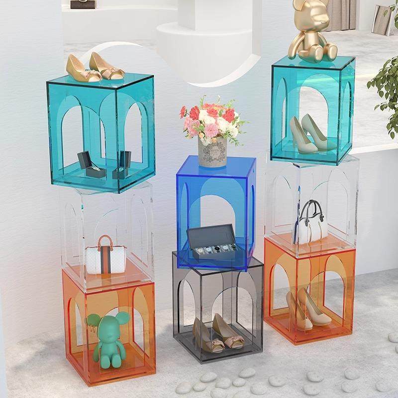 亚克力创意透明展示台商场店铺中岛高低台子流水台服装 饰摆件 店装