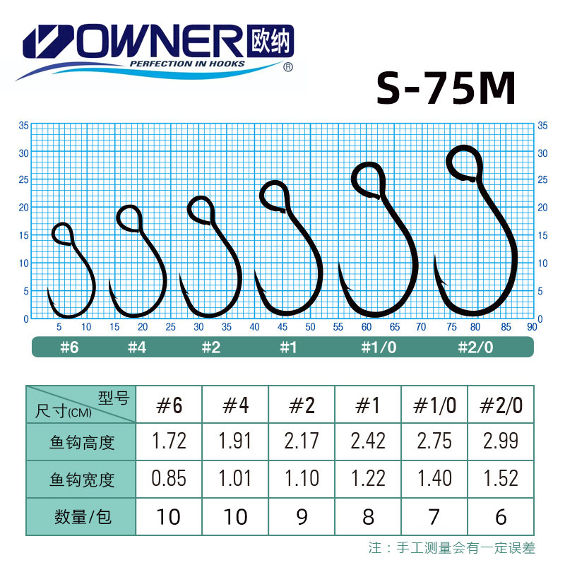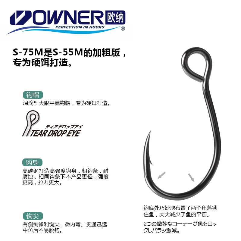 75M路亚军鱼鳟鱼加强钩 OWNER欧纳大眼钩米诺假饵平圈单钩S