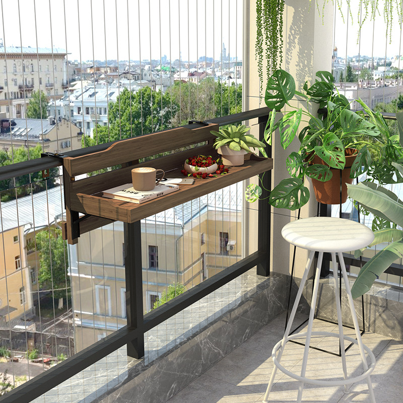 阳台栏杆休闲小吧台小户型实木创意悬挂电脑桌可折叠阳台吧台挂桌