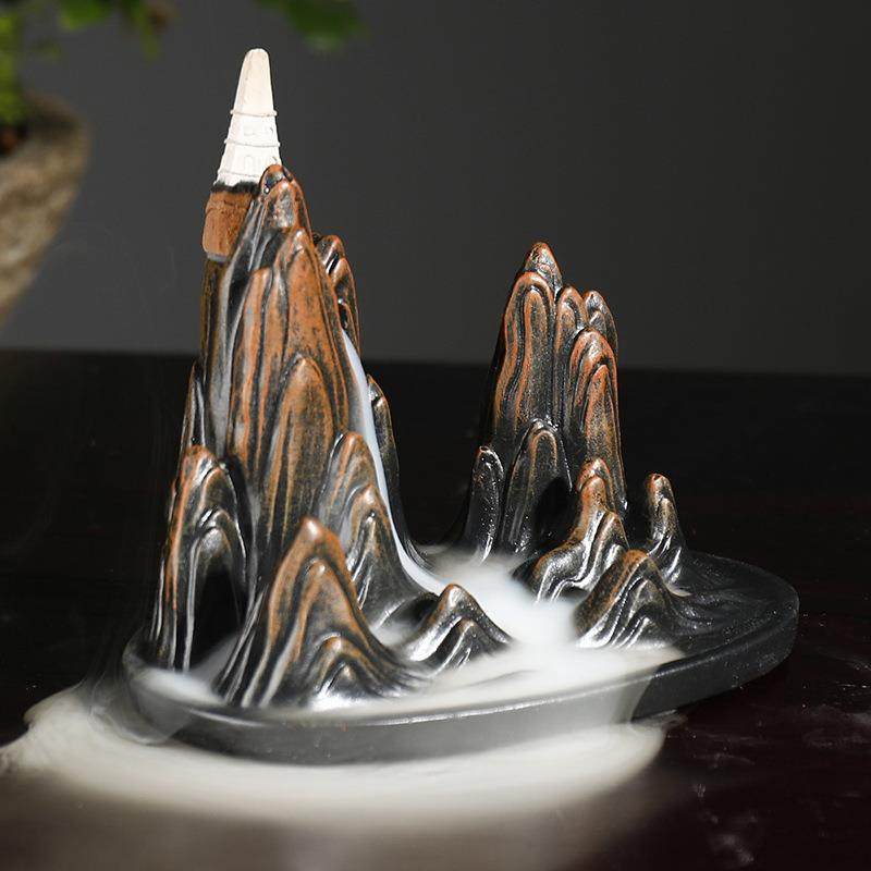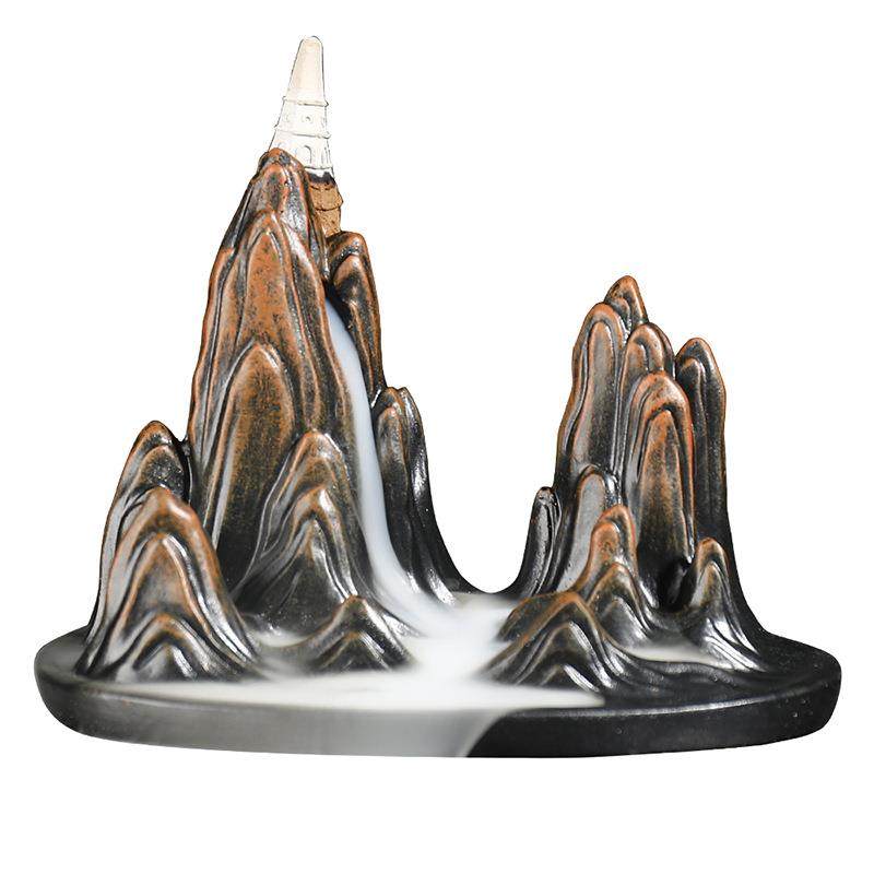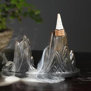 跨境树脂檀香倒流香薰炉家居摆件创意高山流水烟倒流炉工艺品摆件