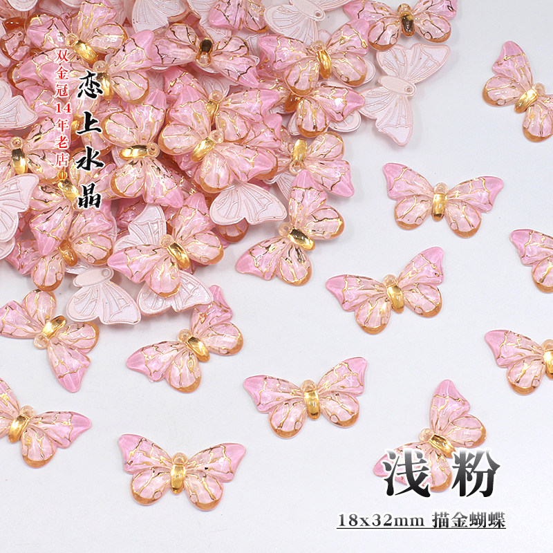 5个18x32mm树脂描金蝴蝶吊饰挂饰单孔diy古风发簪头饰手工材料