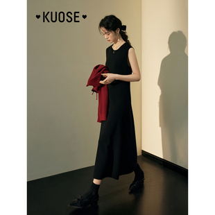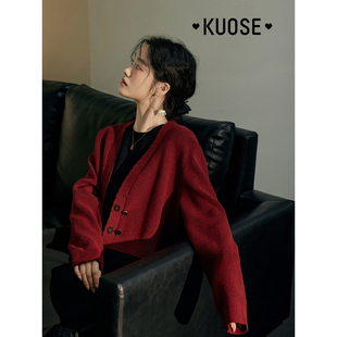 女25秋冬季 外套背心裙子两件套装 毛衣连衣裙 红色开衫 阔色新中式