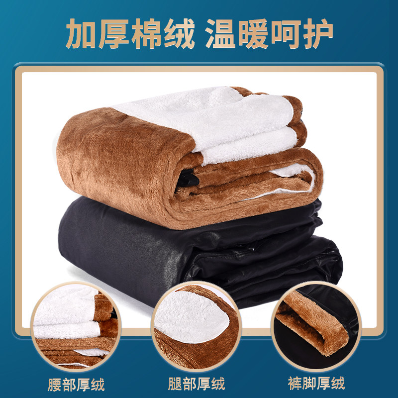 外卖工作裤 裤 男加厚绒宽松防水防油宽松耐磨劳保干活穿工装 皮裤