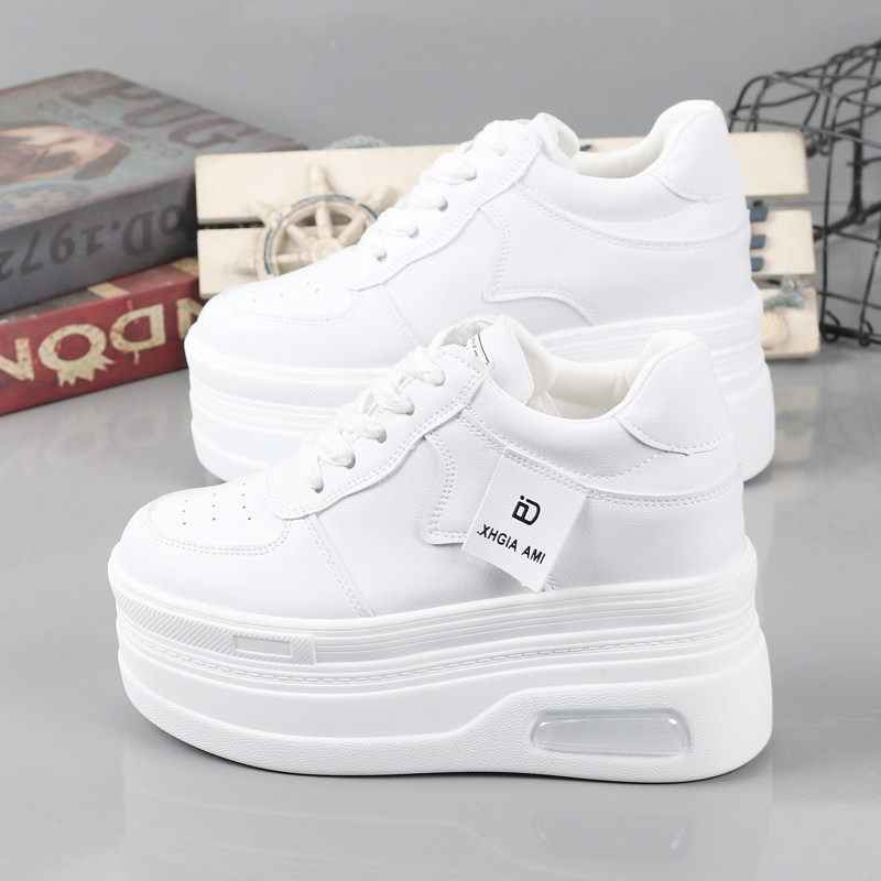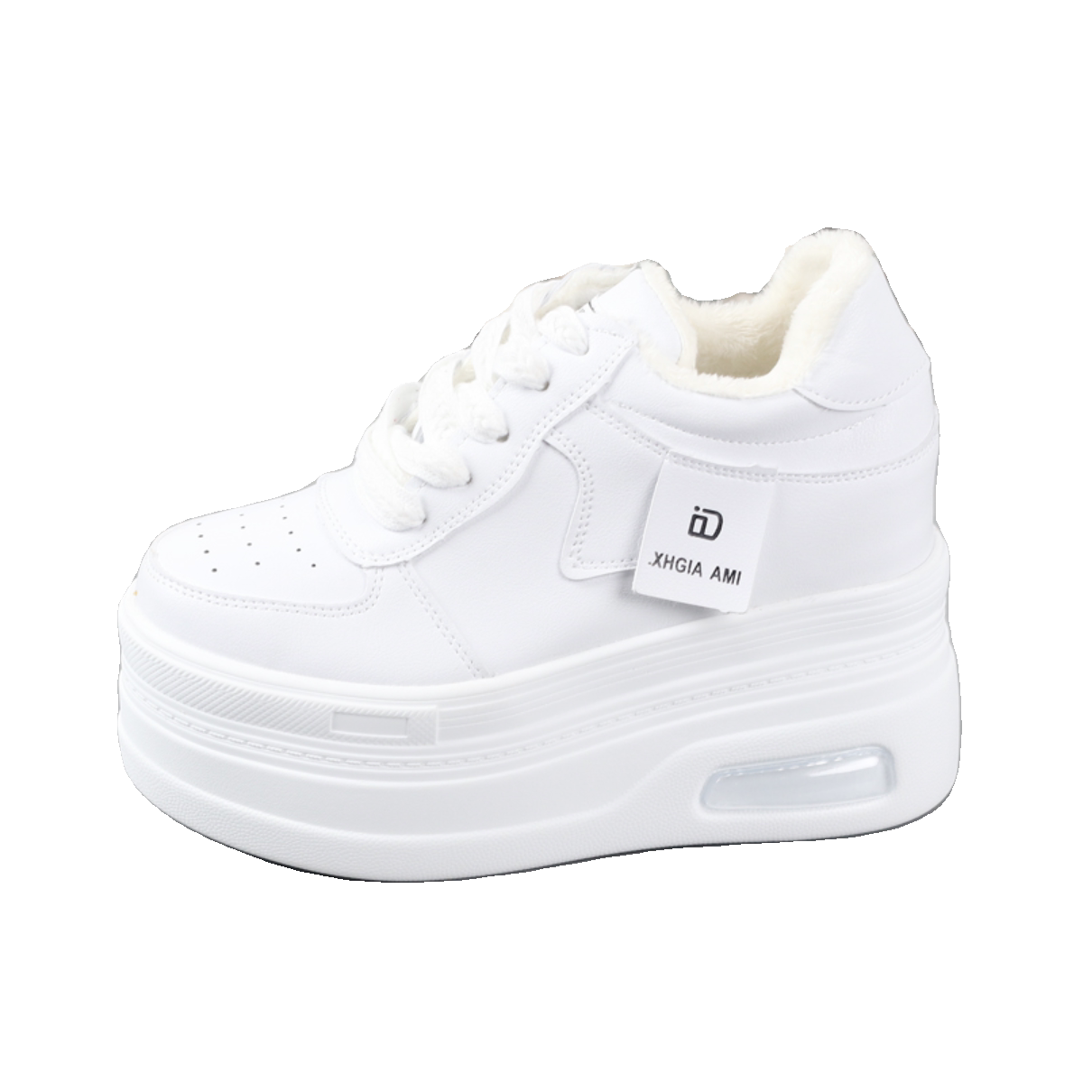 女休闲棉鞋 12CM松糕鞋 女 女小个子厚底内增高8 2025秋冬加绒小白鞋