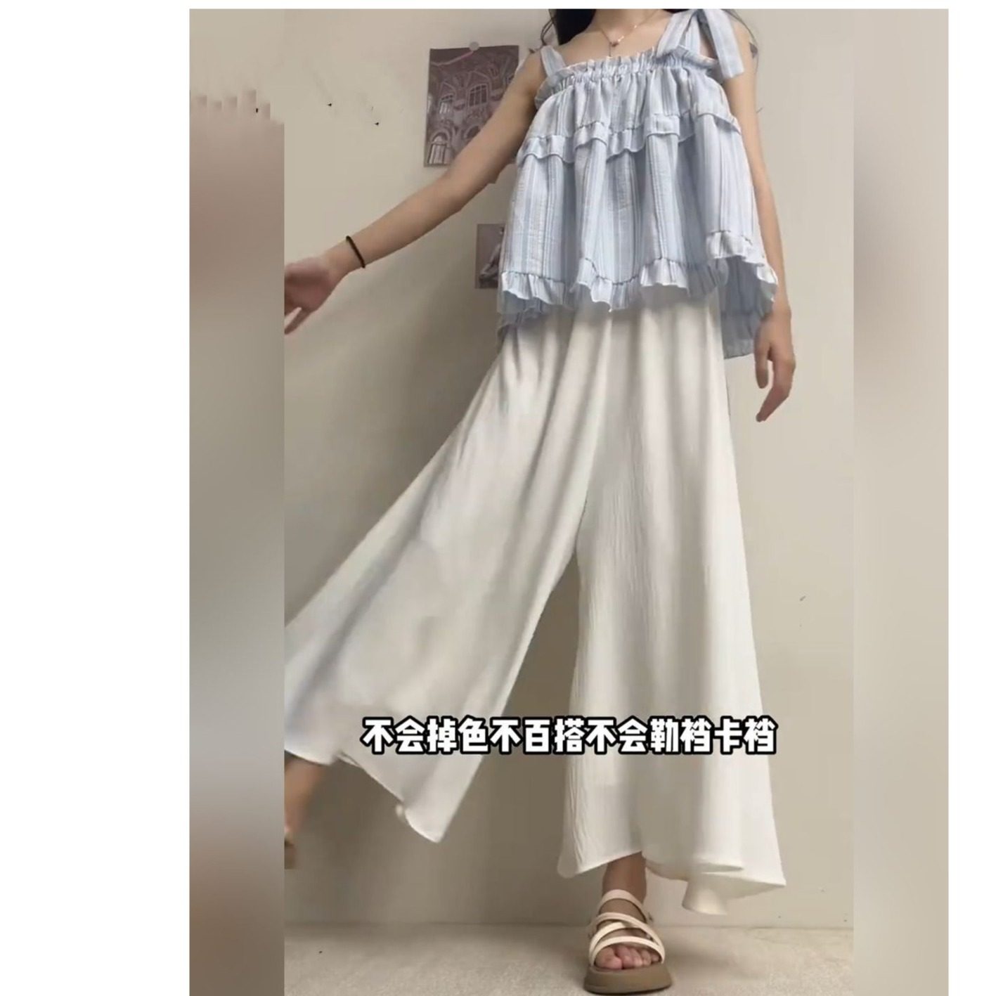 浅色糯米休闲裤 子 女秋冬加绒胖妹妹mm高腰宽松显瘦梨型身材阔腿裤