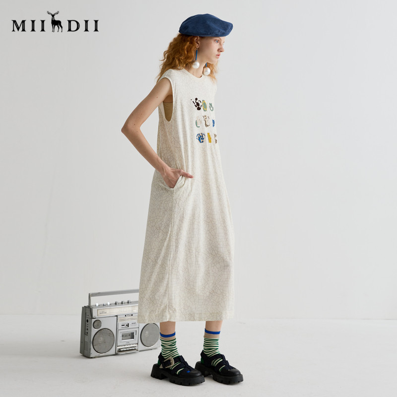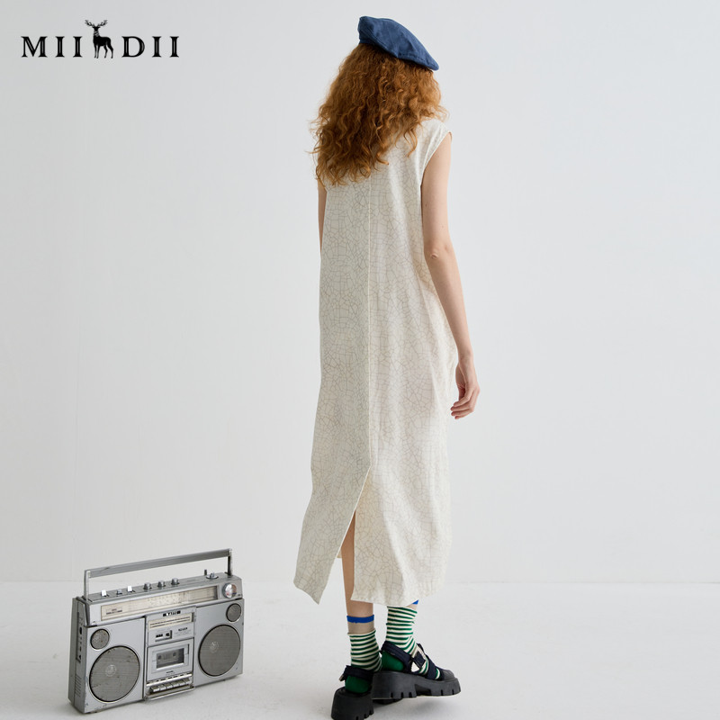 谜底连衣裙无袖 复古风度假肌理感宽松H型长裙252ML0600 2025夏新品