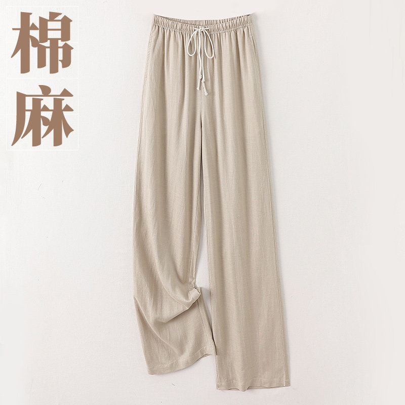 春夏棉麻阔腿裤 亚麻休闲裤 女长裤 薄款 高腰显瘦宽松透气大码 新款