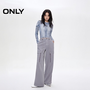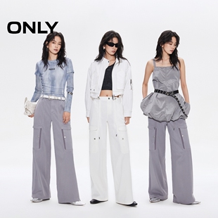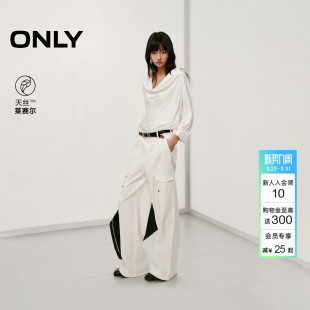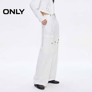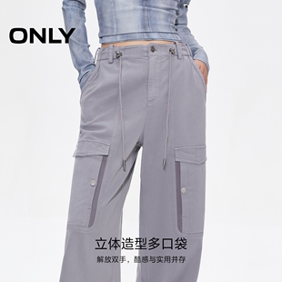 休闲裤 ONLY2026春季 风抽绳宽松实用口袋直筒长裤 天丝工装 女 新款