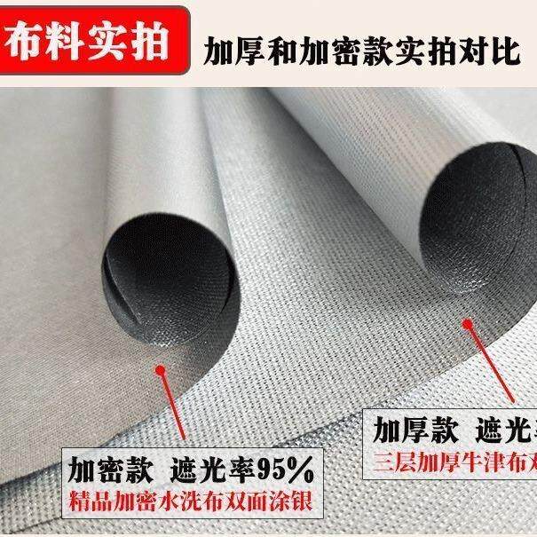 加厚全遮光布窗帘成品防晒隔热阳台遮阳布出租房卧室免打孔不透光