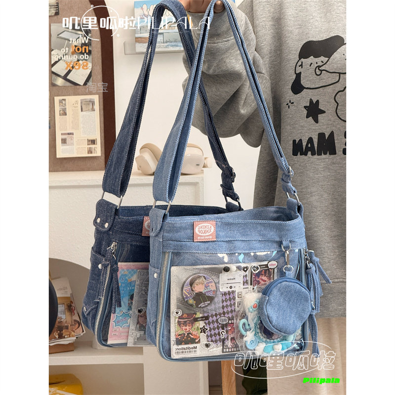 日系牛仔布痛包小众两面斜挎包小食量谷子包百搭通勤单肩包牛仔包