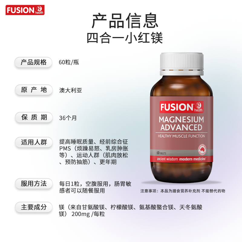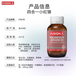FusionHealth澳辉生高级镁甘氨酸镁女性成人缓解 四合一小红镁