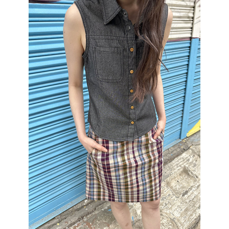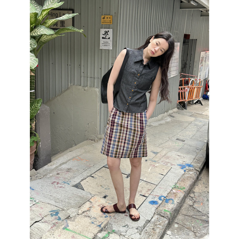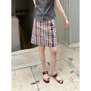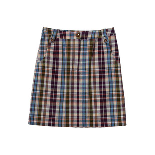 UNRETRO全棉格子直筒半身裙女复古小个子遮肉显瘦A字中裙 清仓