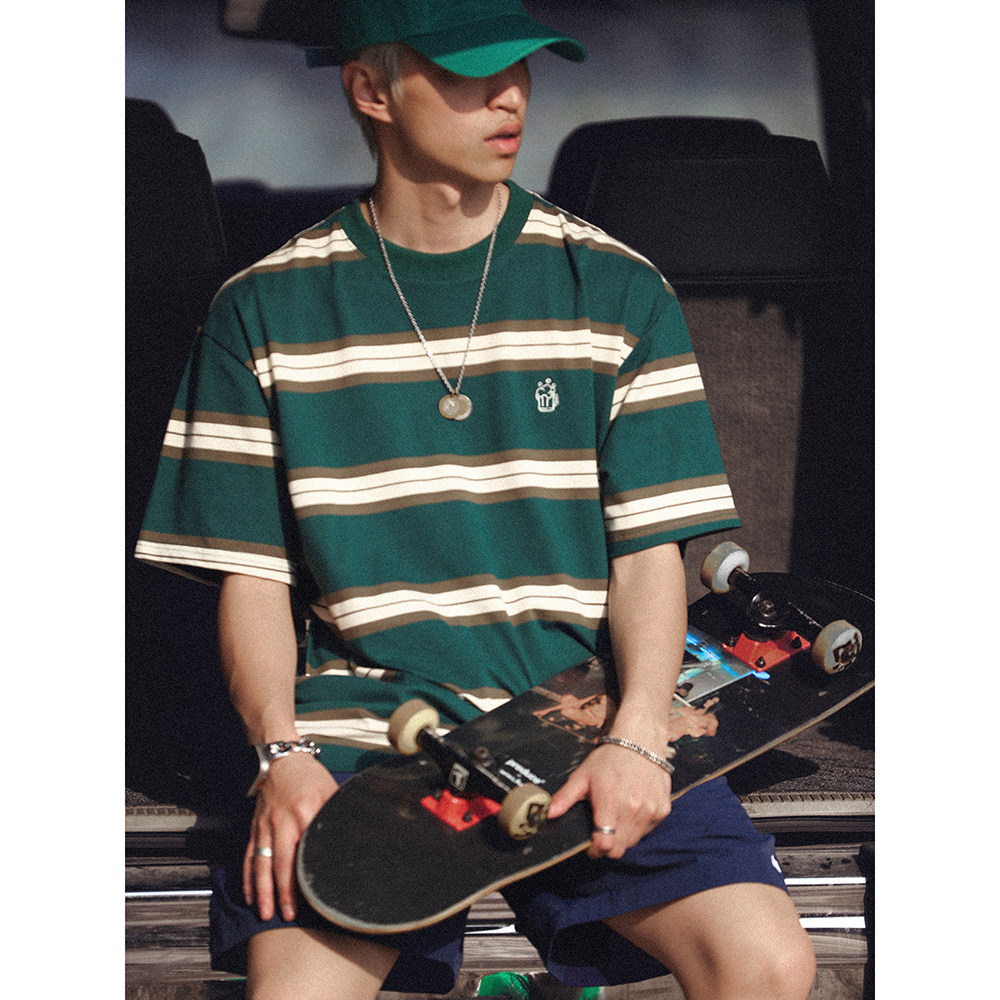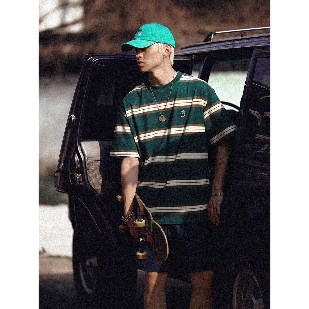 T恤日系复古宽松打底衫 AboutPlanB男装 纯棉条纹短袖 新款 2025夏季