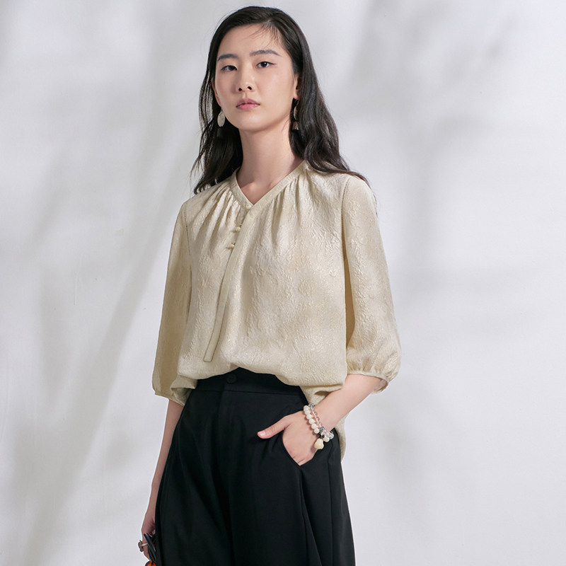 Kidny 衬衫 迪凯国风百搭上衣2025年夏季 简约中式 女 新款 Distin