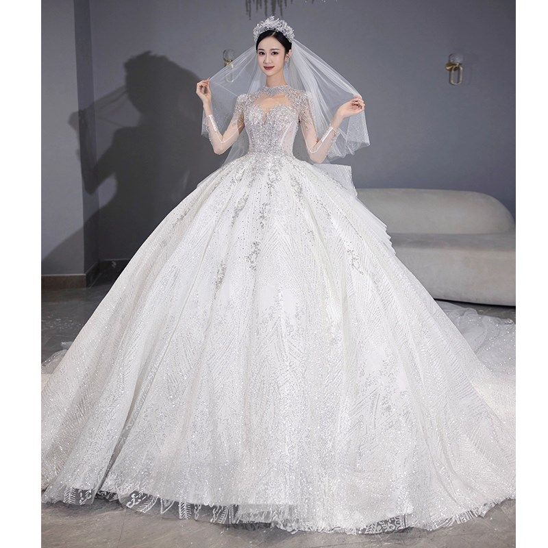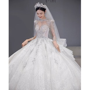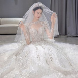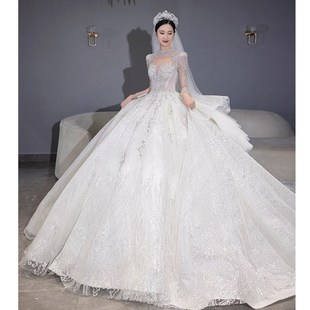 法式 新娘奢华重工大拖尾宫廷风高级质.感白色主 婚纱礼服2024新款