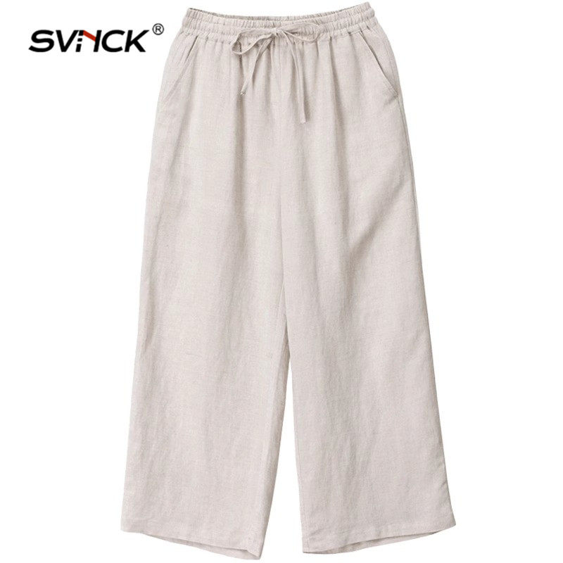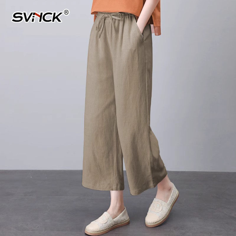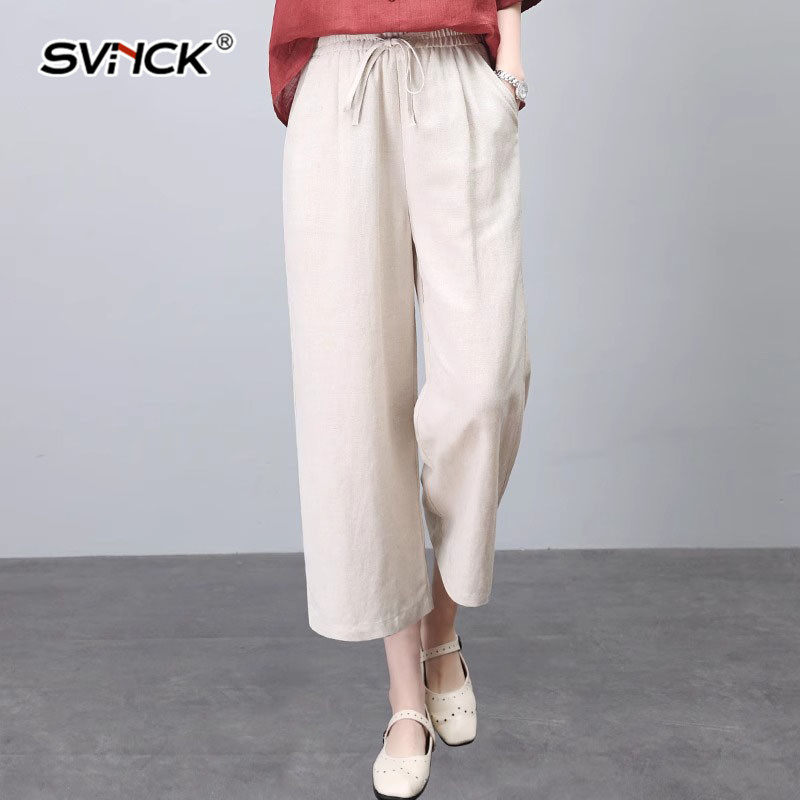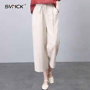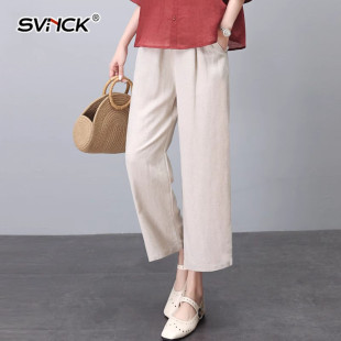 宽松遮肉休闲高腰阔腿九分裤 新款 女显瘦2025年夏季 简约文艺棉麻裤