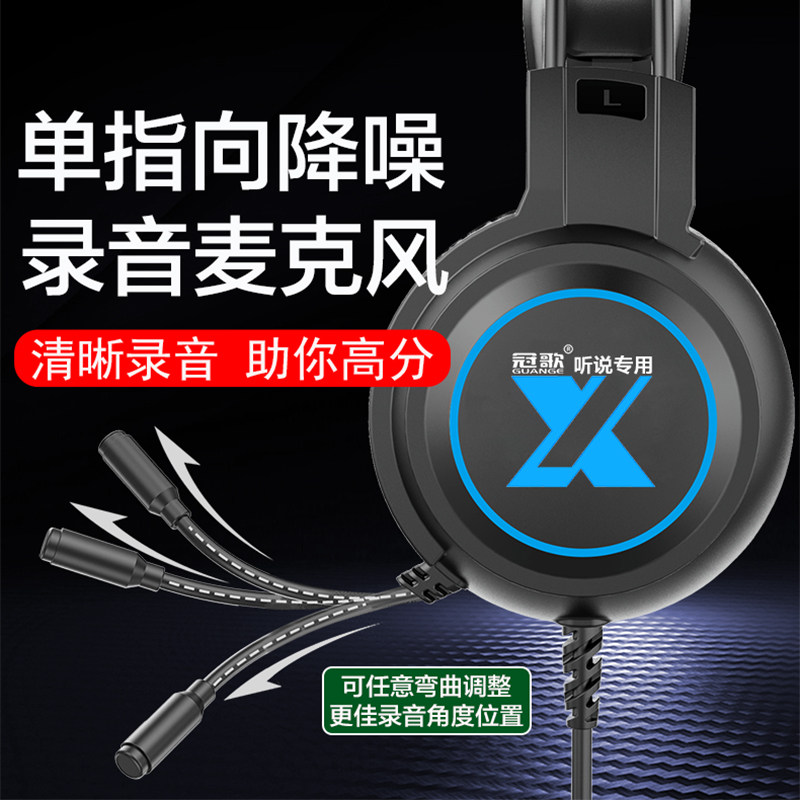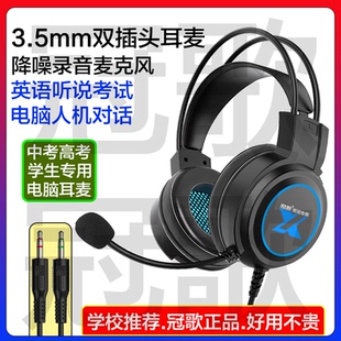学校英语听说考试耳麦人机对话录音麦克风3.5mm圆双插头台式 电脑
