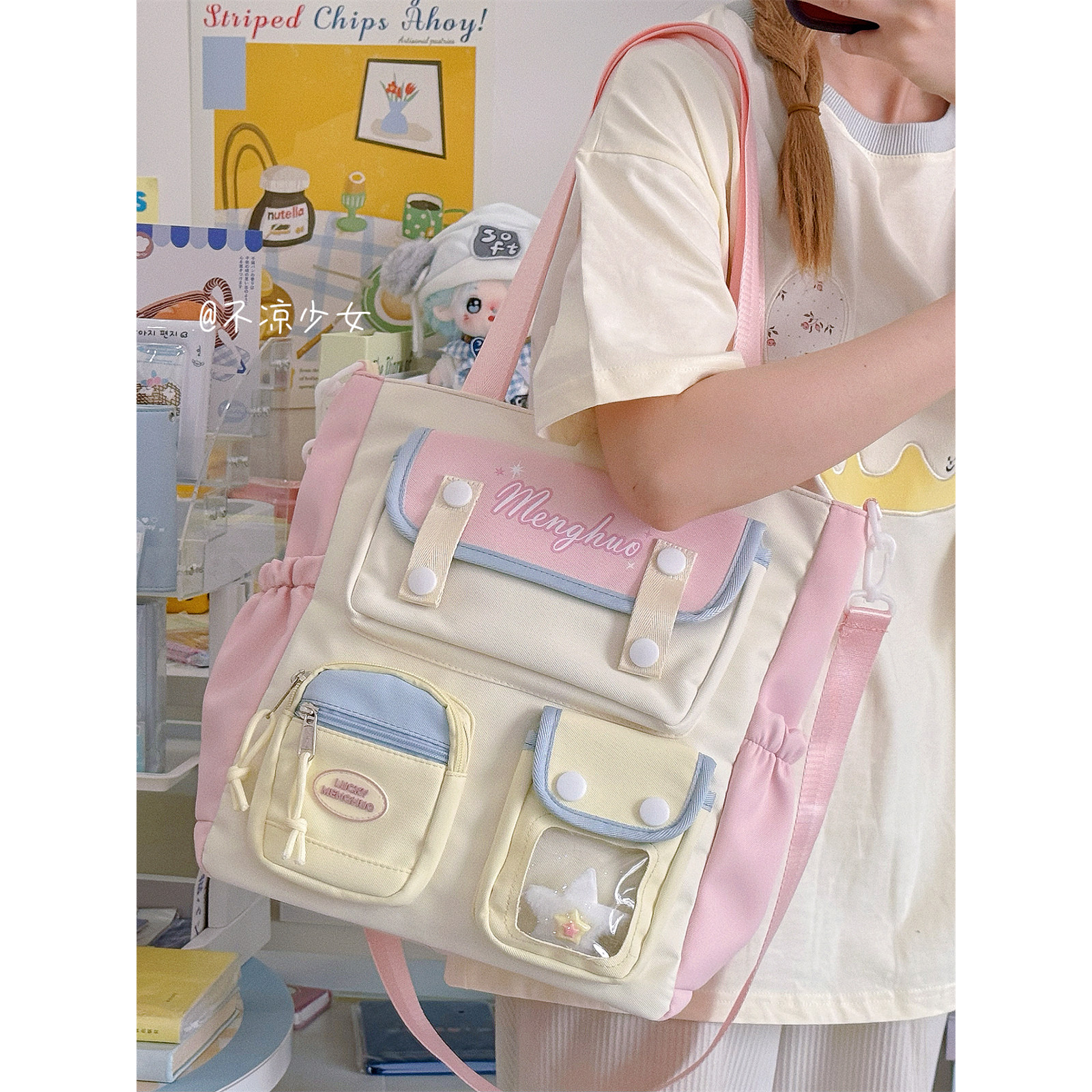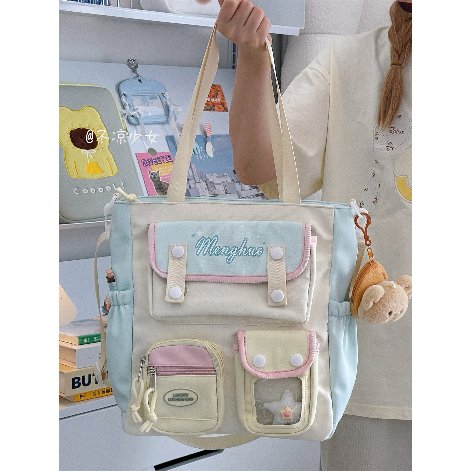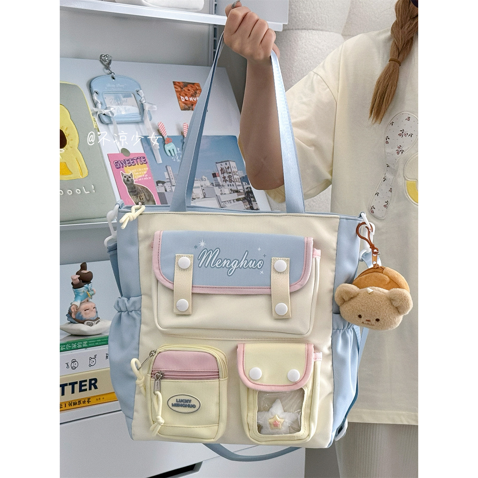 学院大容量托特包撞色小众学生上课补习单肩斜挎包小食量痛包娃包