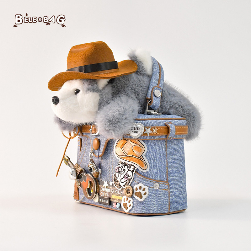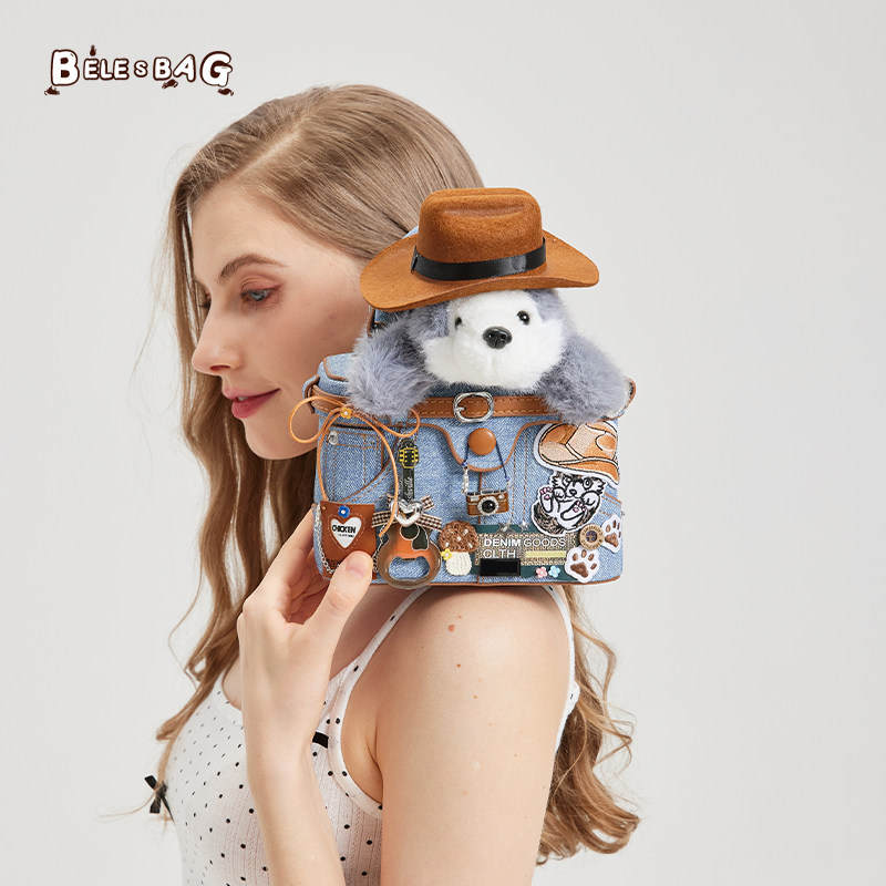 BELE卡通潮玩牛仔包包可爱女生相机包单肩斜挎包新年生日圣诞礼物