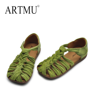 猪笼鞋 Artmu阿木复古包头凉鞋 真皮编织罗马鞋 2025新款 平底 女款