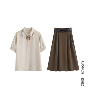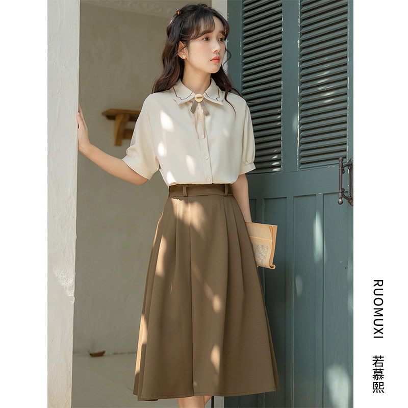 夏季 法式 女2023新款 洋装 学院风两件套裙子气质长裙 茶歇温e柔套装