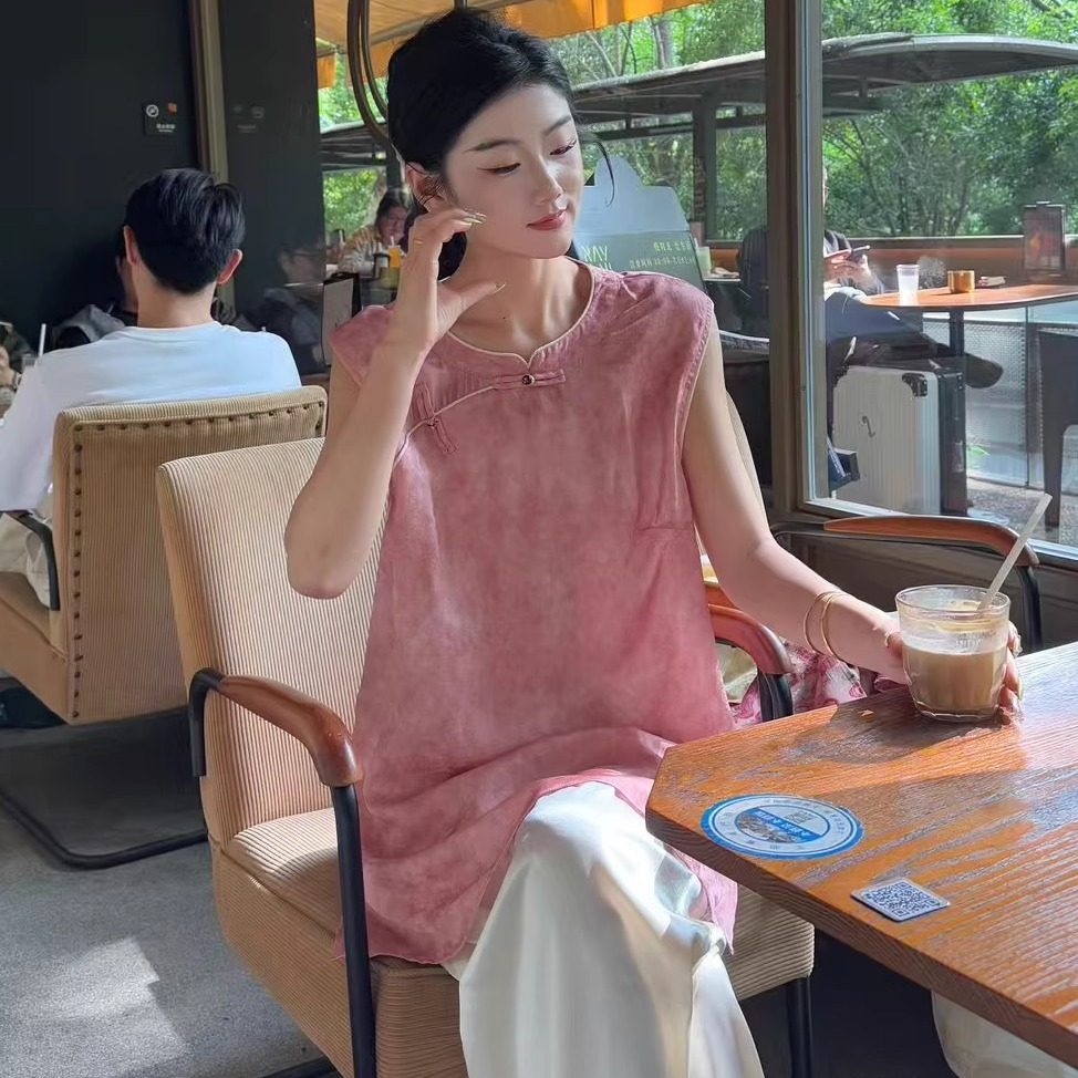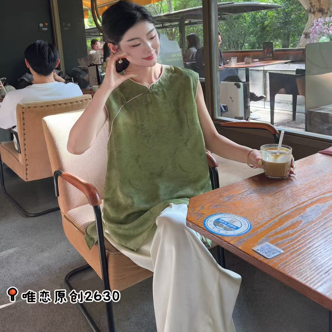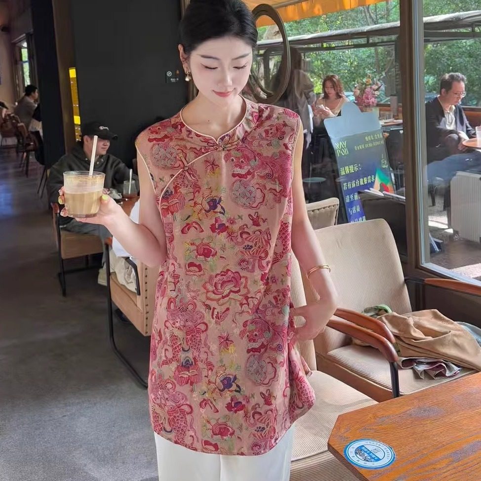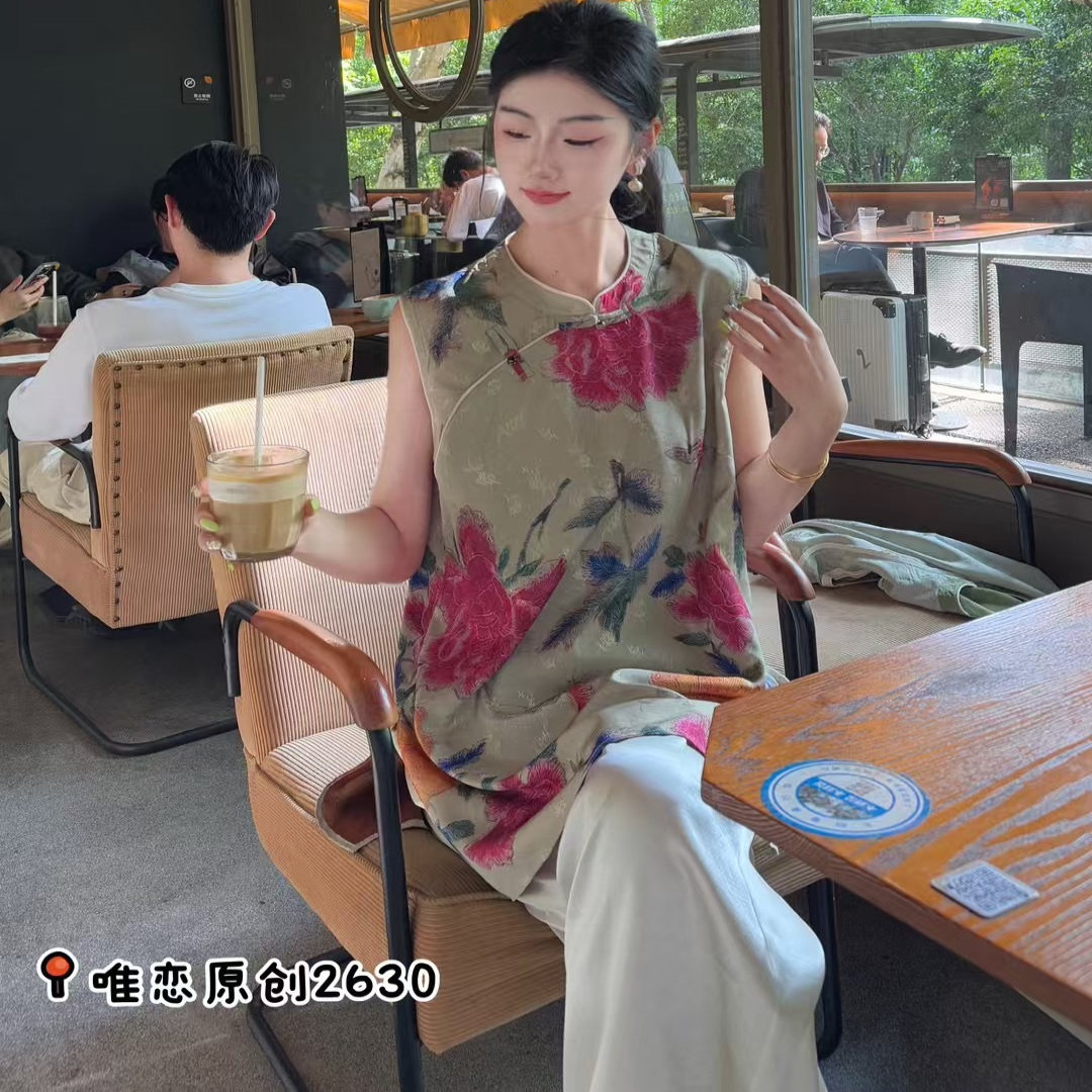 旗袍衫 特价 提花国风新中式 马甲背心花色衬衫 女夏 2630盘扣复古无袖