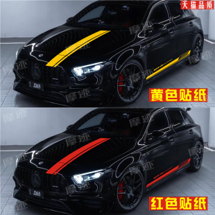 适用于奔驰A45车贴拉花A35A200LB180AMG改装 饰车身侧裙边机盖贴纸