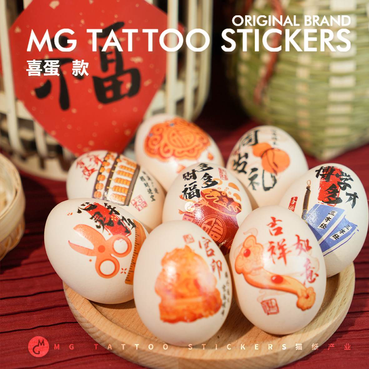 周岁礼抓周福蛋仪式 拈周试晬 感温馨祝福鸡蛋贴纸 喜蛋贴纸 新中式