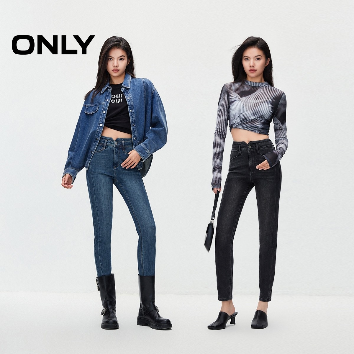 女 ONLY2024秋冬新款 高腰小脚九分牛仔裤 爆款 124349025 简约时尚