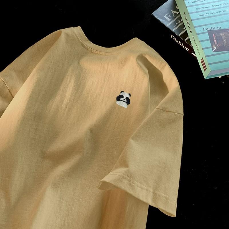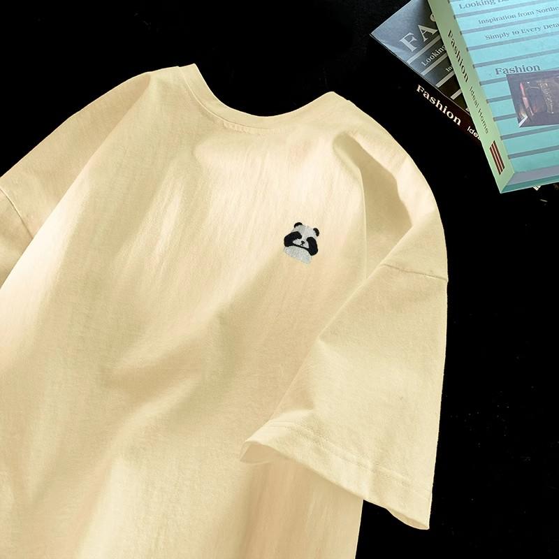 外贸清仓 T恤熊猫印花上衣 品牌尾货捡漏重磅100%纯棉宽松男女短袖