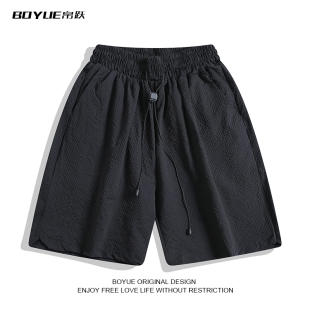 子 男女日系复古街头休闲百搭五分裤 BOYUE帛跃美式 泡泡纱褶皱短裤