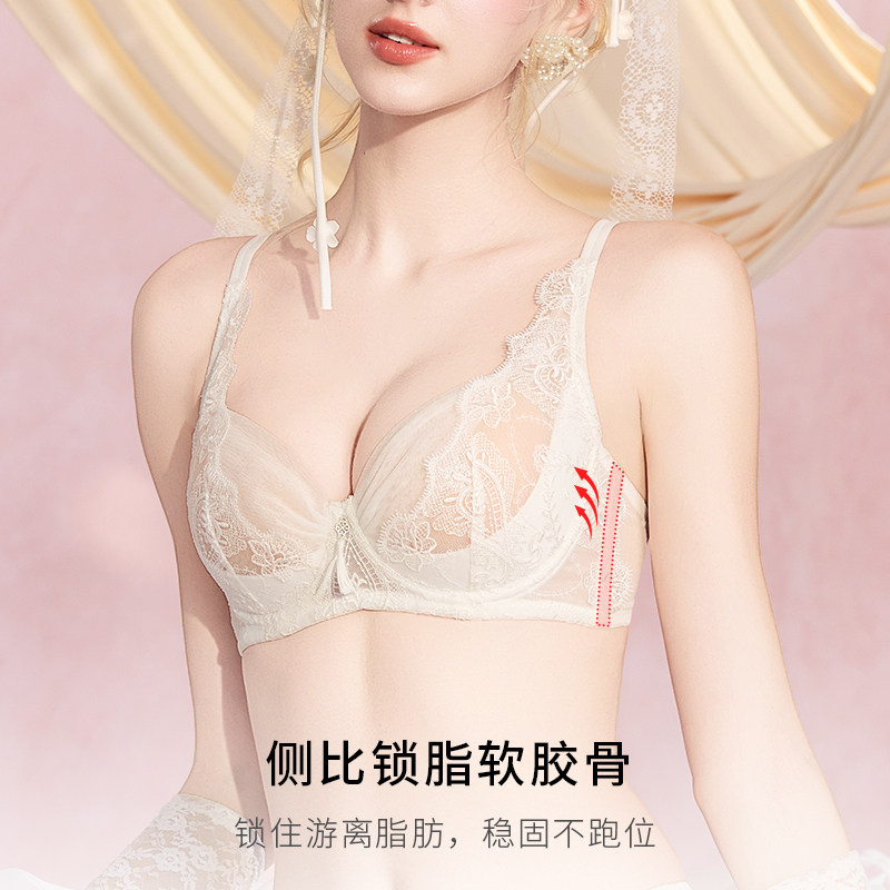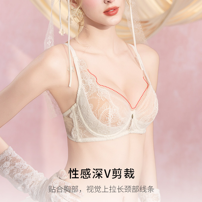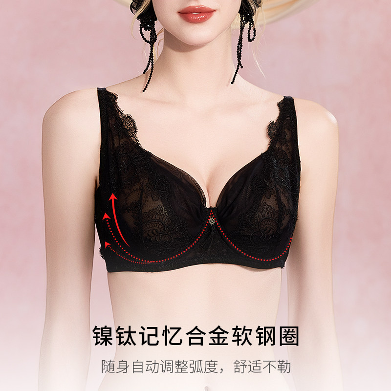 莱特妮丝内衣女夏季 大胸显小性感蕾丝文胸聚拢防下垂调整胸罩 薄款