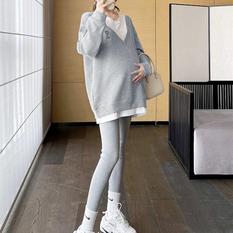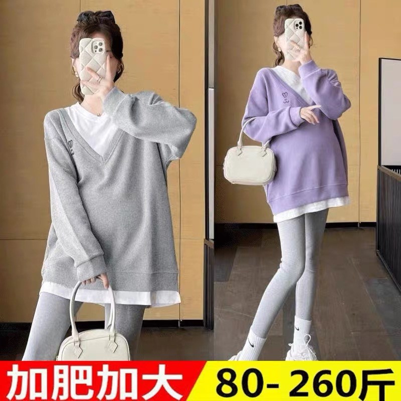 长袖 时尚 遮肚外套宽松显T瘦打底衣300斤 假两件卫衣大码 秋冬孕妇装