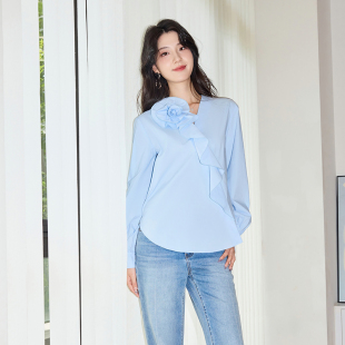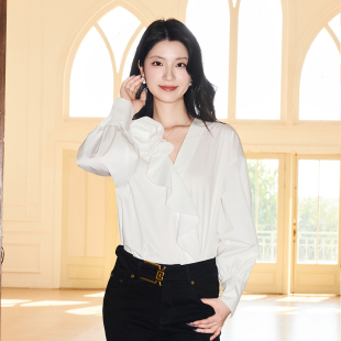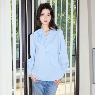 不对称荷叶边玫瑰衬衫 吕星辰&龚蓓苾同款 YESIR叶谦25新款 YES