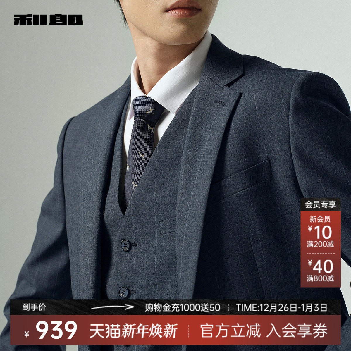 男士 利郎官方西服套装 25秋季 新款 男装 新郎结婚西装 条纹三件套