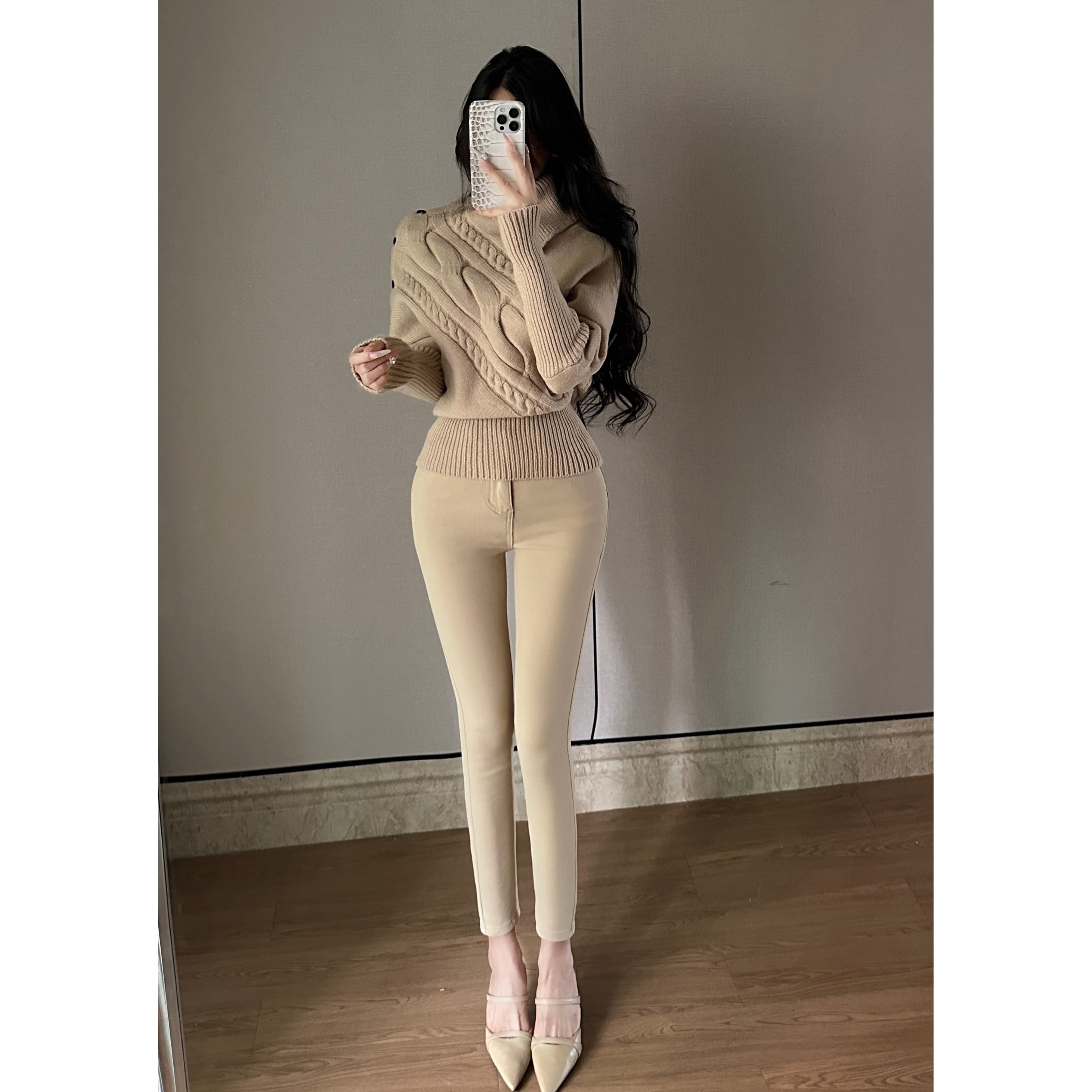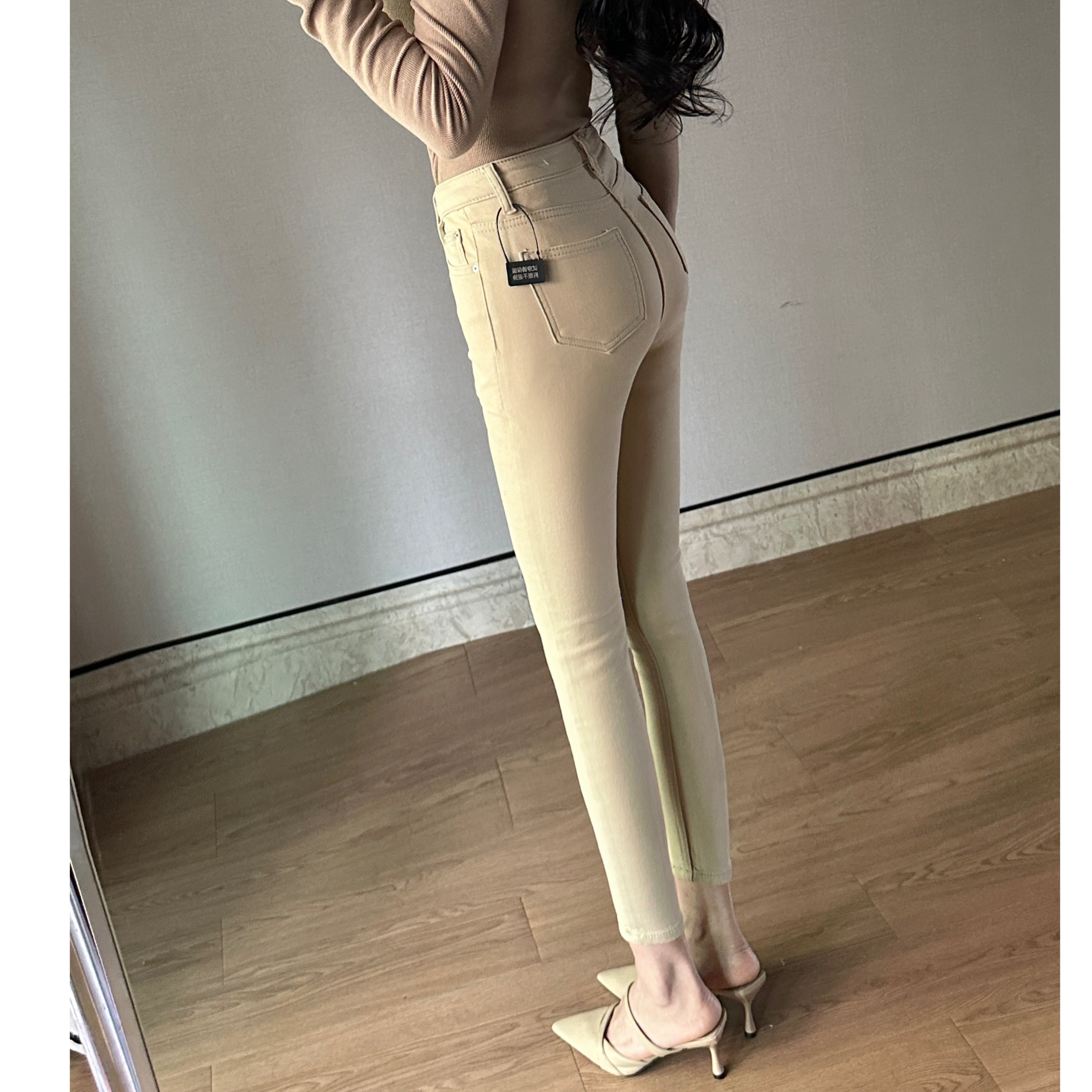 牛仔裤 江南美人 秋冬新款 卡其色咖色纯欲小个子小脚裤 韩女丰胯