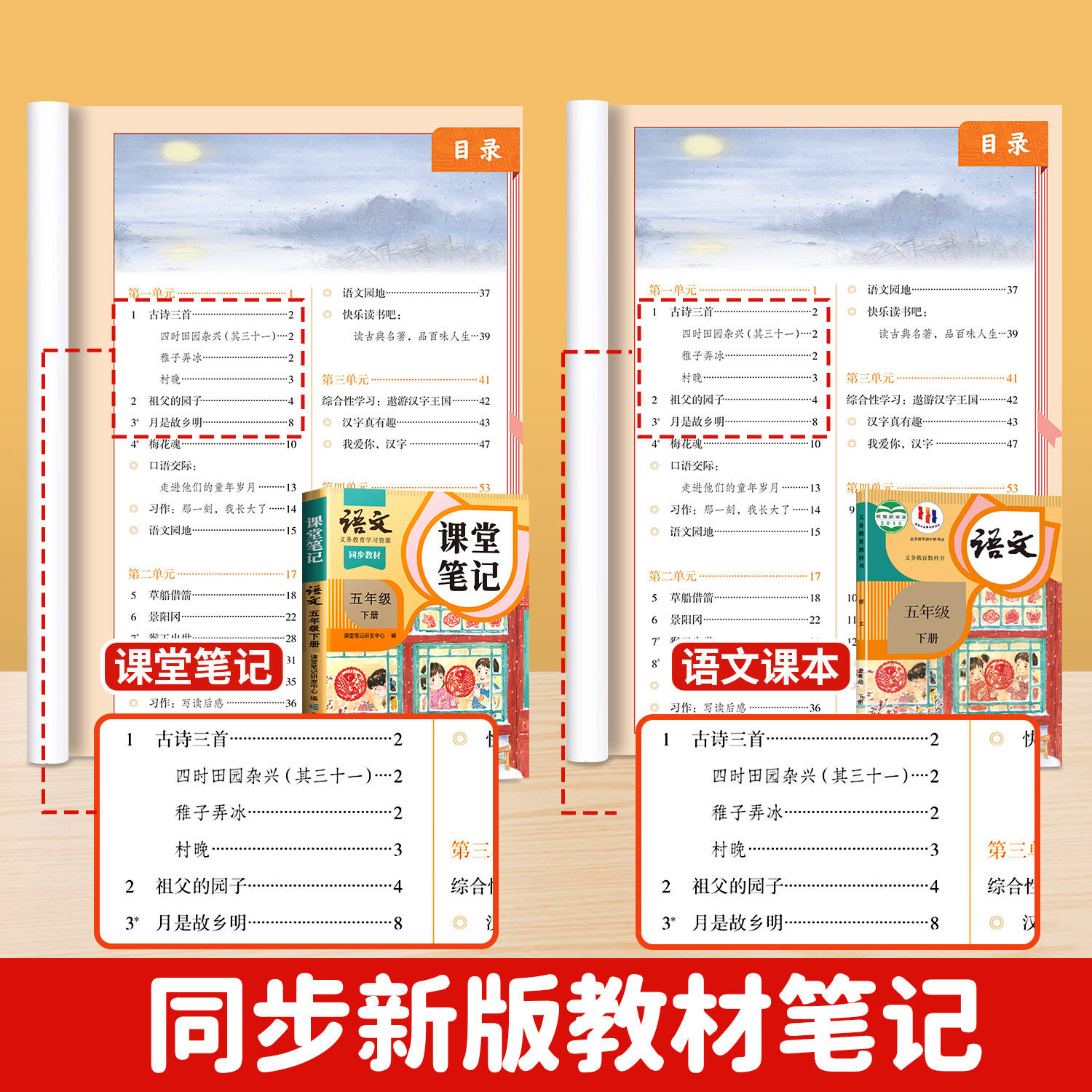 2026春季 小学数学英语全套苏教北师大小学生课本同步练习册预习教材教辅资料随堂全解解读书 适用五年级下册上册课堂笔记语文人教版