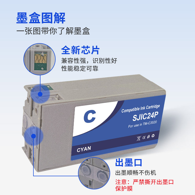 奥美亚SJIC24P墨盒适用爱普生TM C3520标签打印机墨盒爱普生SJIC24P墨盒3520标签机专用墨盒sjic24p墨盒