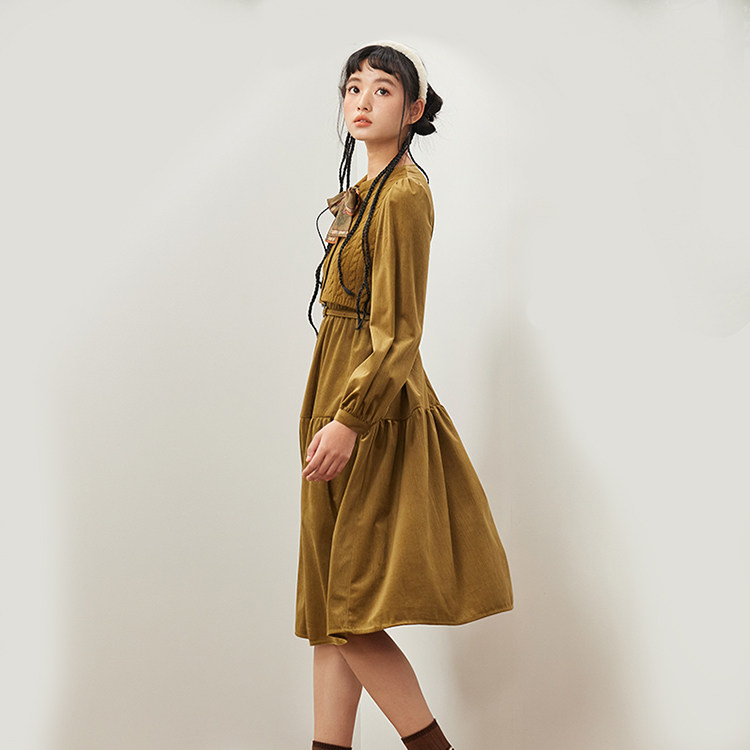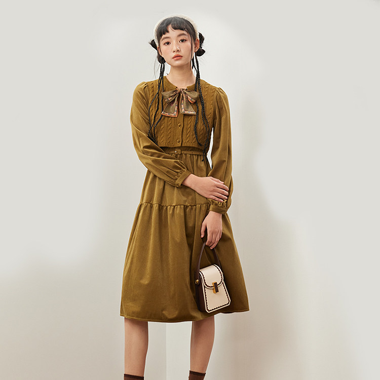 简约收腰毛织拼接长袖 复古时尚 连衣裙111E341177 2023冬装 pit