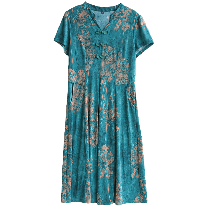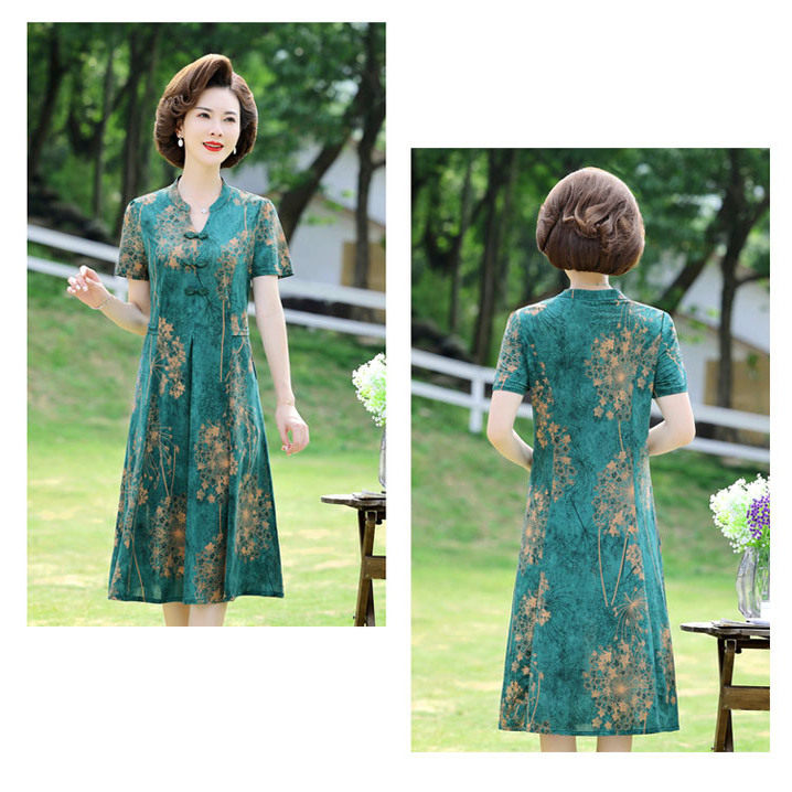 桑蚕丝中年妈妈连衣裙高端超火改良旗袍女夏季 真丝裙子 中老年女装