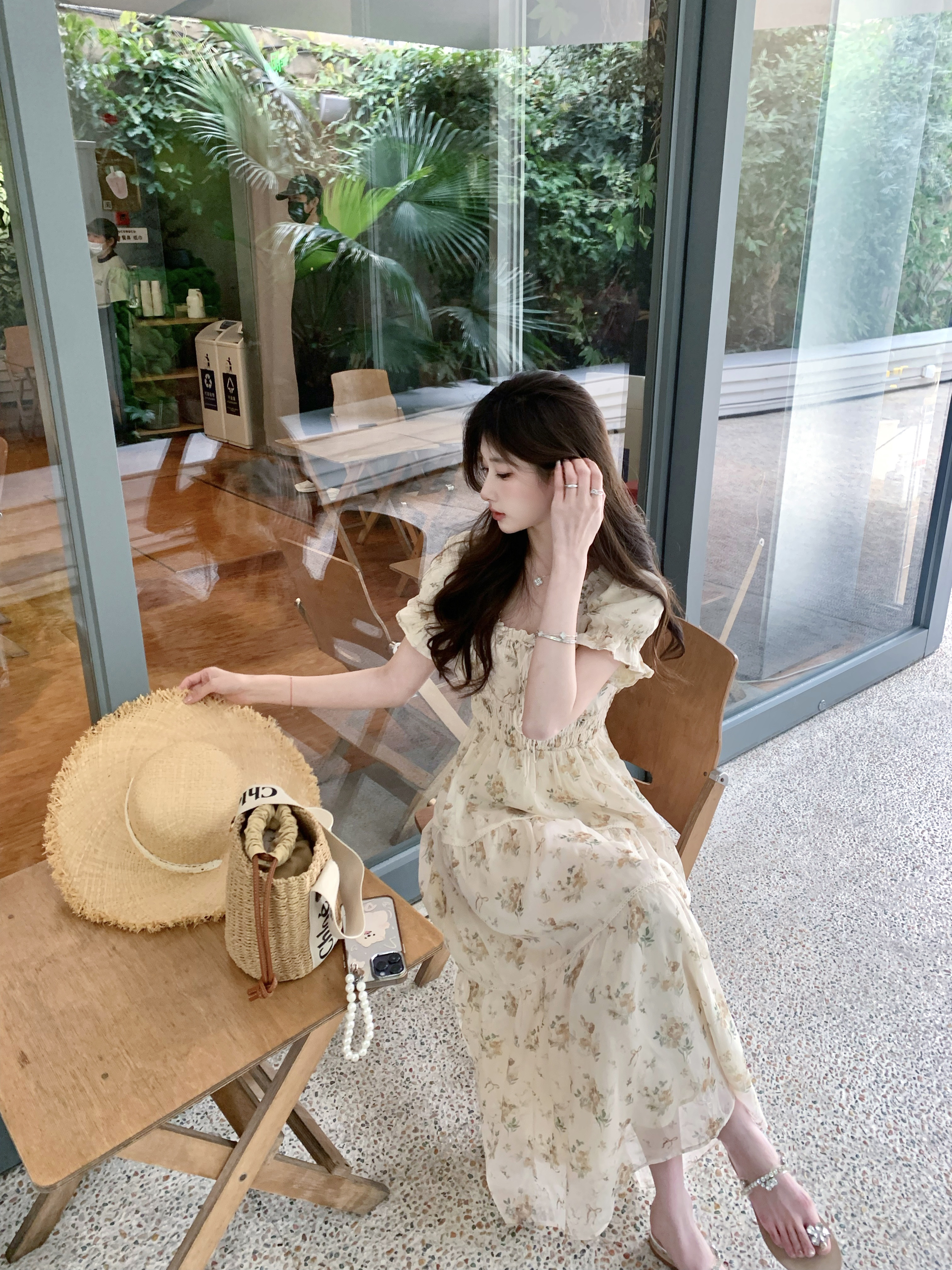 萌萌Ja」维纳斯女神 碎花连衣裙收腰显瘦温柔度假风长裙春夏 长款