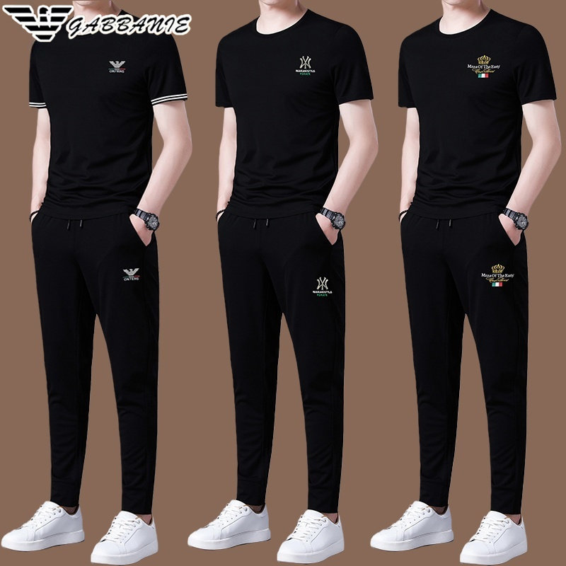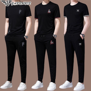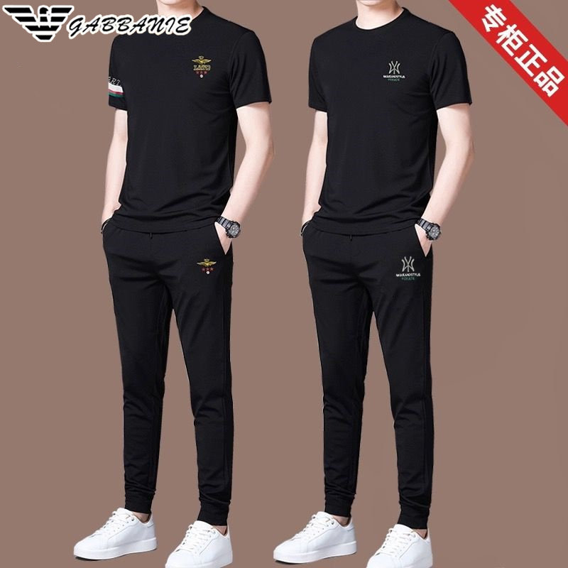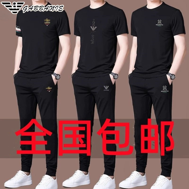 阿玛尼亚男士 潮流冰丝两套装 运动跑步套装 夏季 T恤休闲速干短袖 奇