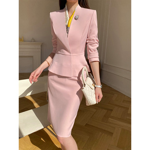 气质休闲显瘦西装 新款 套裙婚礼主持人工作服 女装 减龄遮肚职业套装