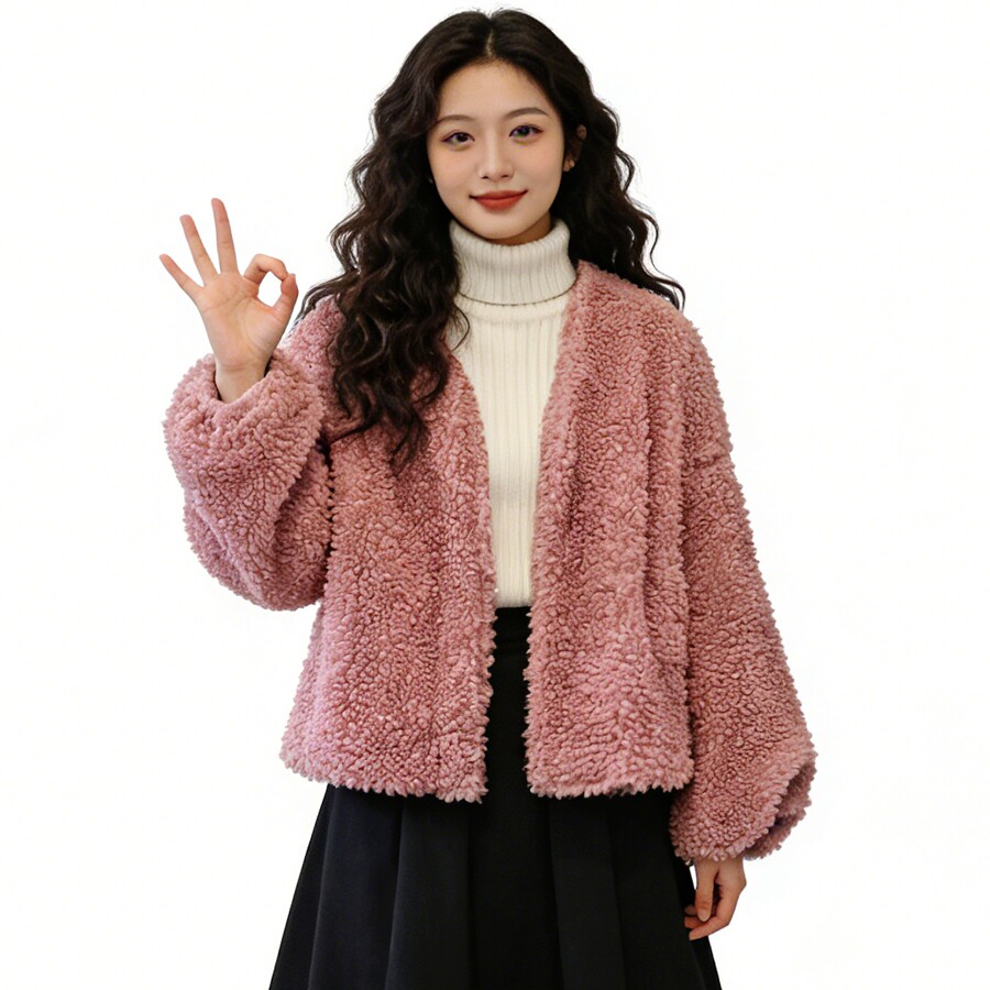 皮草大衣棉衣棉服披风上衣大码 女春秋冬装 新短款 宽松毛毛外套开衫