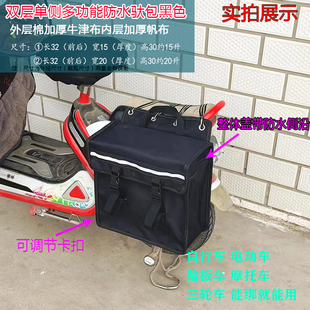 黑色帆布多功能摩托车单侧挂包电动车自行车侧边包驮包后座工具包