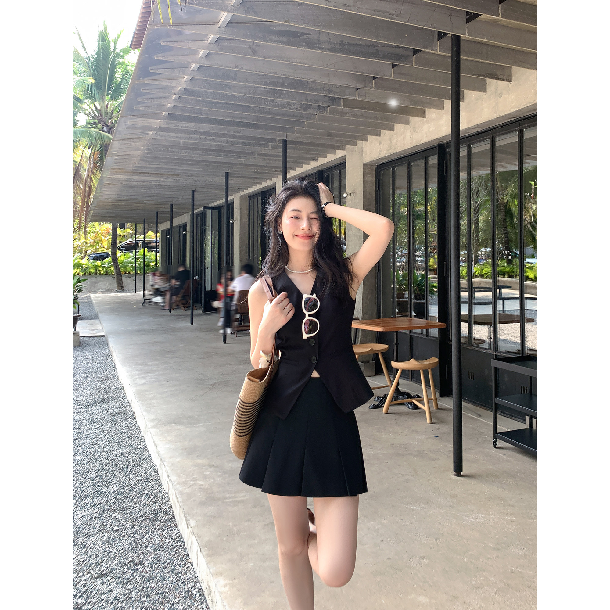 半身裙 黑色高腰百褶裙女防走光a字包臀西装 MULVAN 现货7折