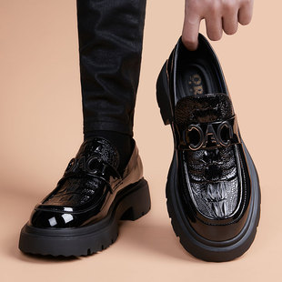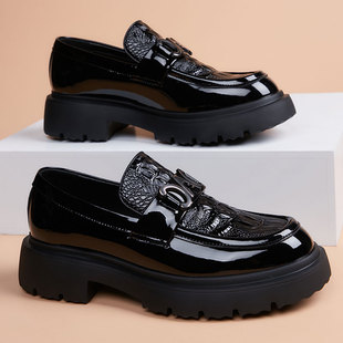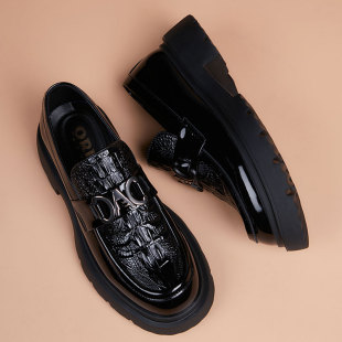 软皮软底真皮增高英伦风男鞋 皮鞋 厚底套脚一脚蹬休闲鞋 新款 男冬季