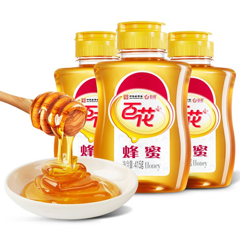 天然蜂蜜峰蜜奶茶咖啡茶饮伴侣 3瓶 中华老字号百花蜂蜜415g 瓶